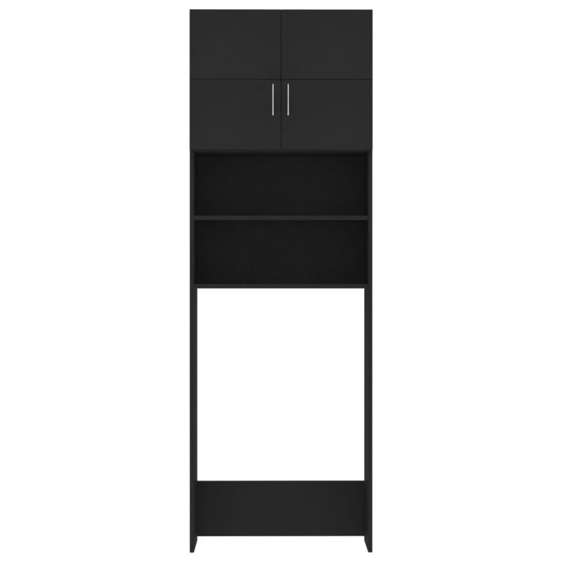 Шкаф за пералня, черен, 64x25,5x190 см, инженерно дърво
