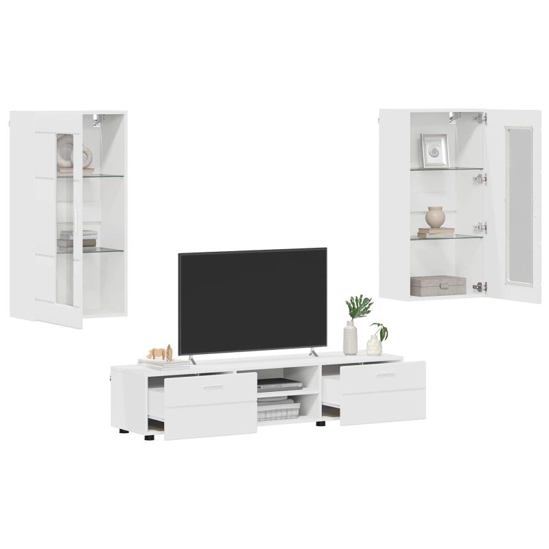 Комплект ТВ шкаф с чекмедже FLORIN 3 pcs Бяло Инженерно дърво