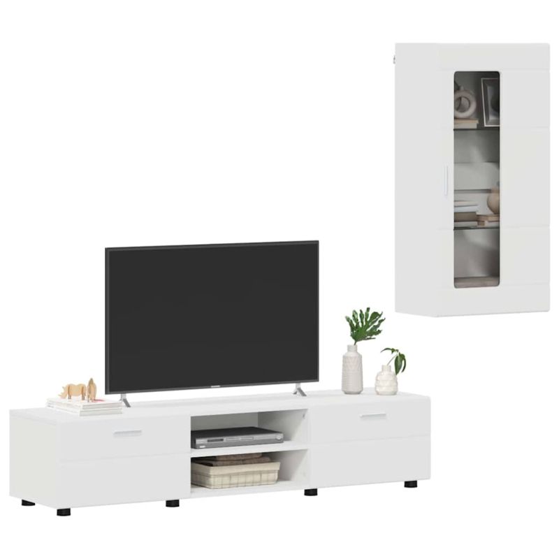Комплект ТВ шкаф с чекмедже с рафт с врата Бяло Инженерно дърво