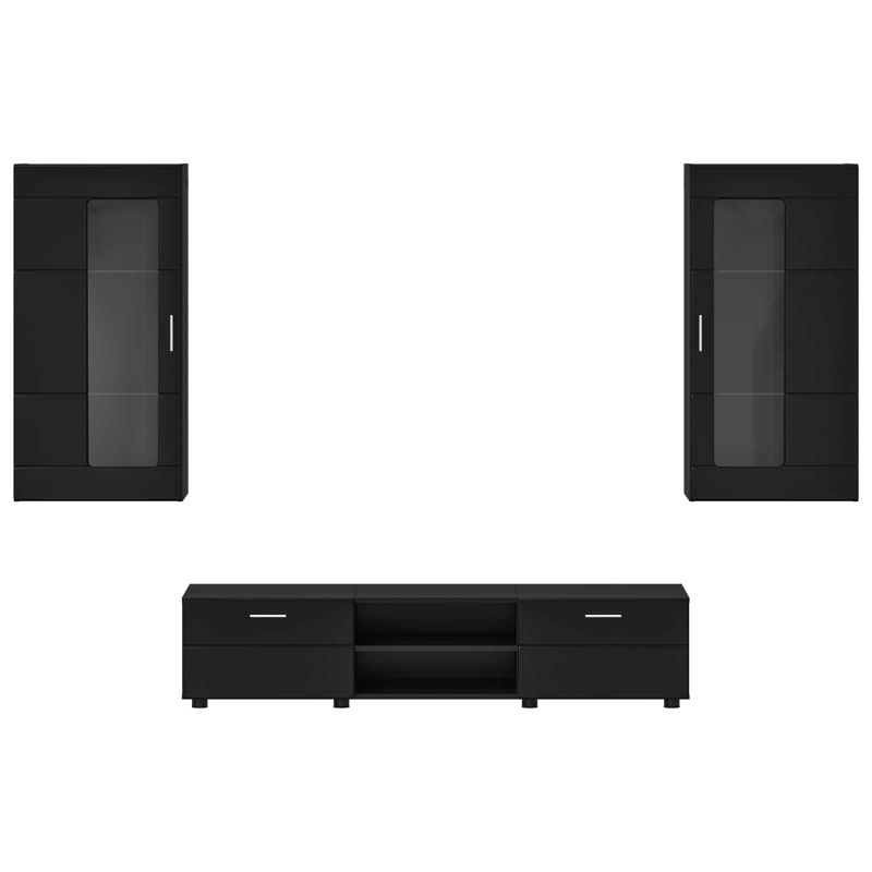 Комплект ТВ шкаф с чекмедже FLORIN 3 pcs Черно Инженерно дърво