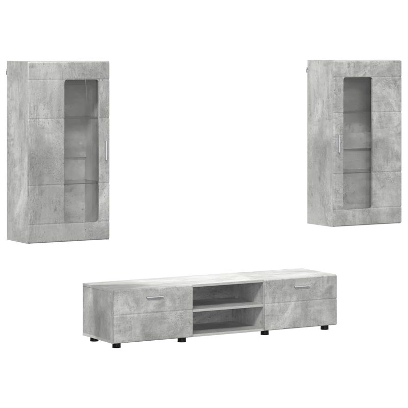 Комплект ТВ шкаф FLORIN 3 pcs Циментено сиво Инженерно дърво