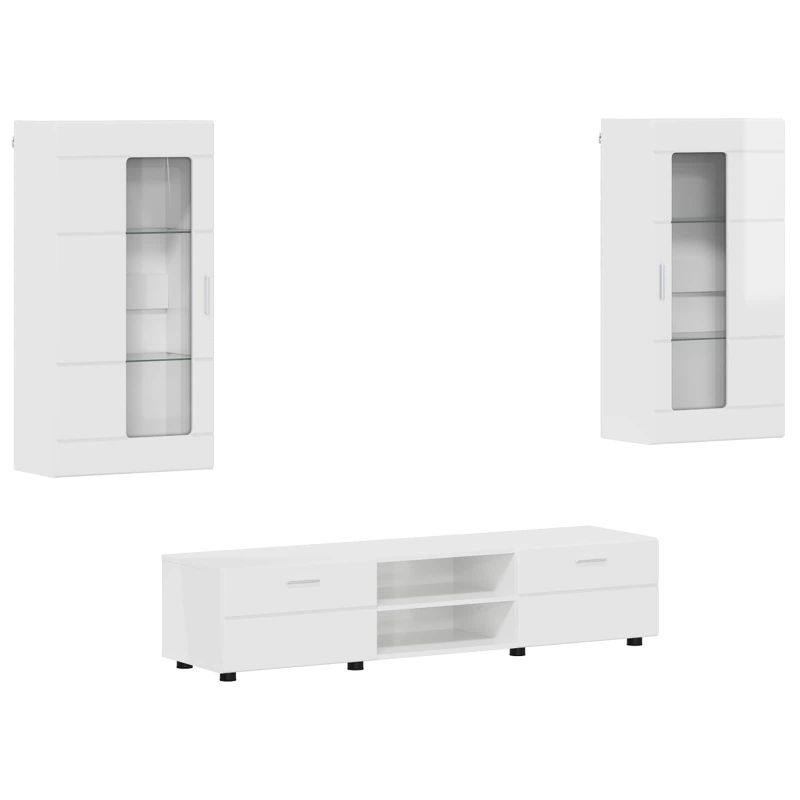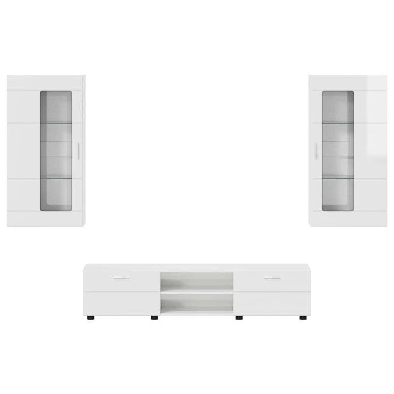 Комплект ТВ шкаф FLORIN 3 pcs Лъскаво бяло Инженерно дърво