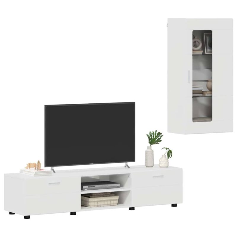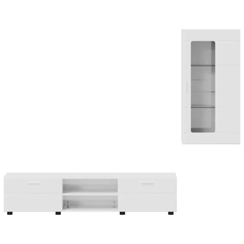Комплект ТВ шкаф с чекмедже с рафт Лъскаво бяло Инженерно дърво