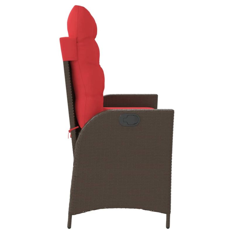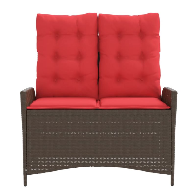 Накланяща се градинска пейка с възглавници кафяв полиратан