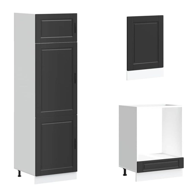 Комплект кухненски шкафове, 7 части, "Porto", черно инженерно дърво