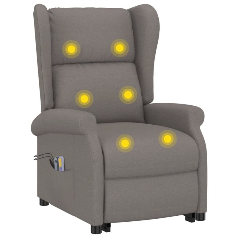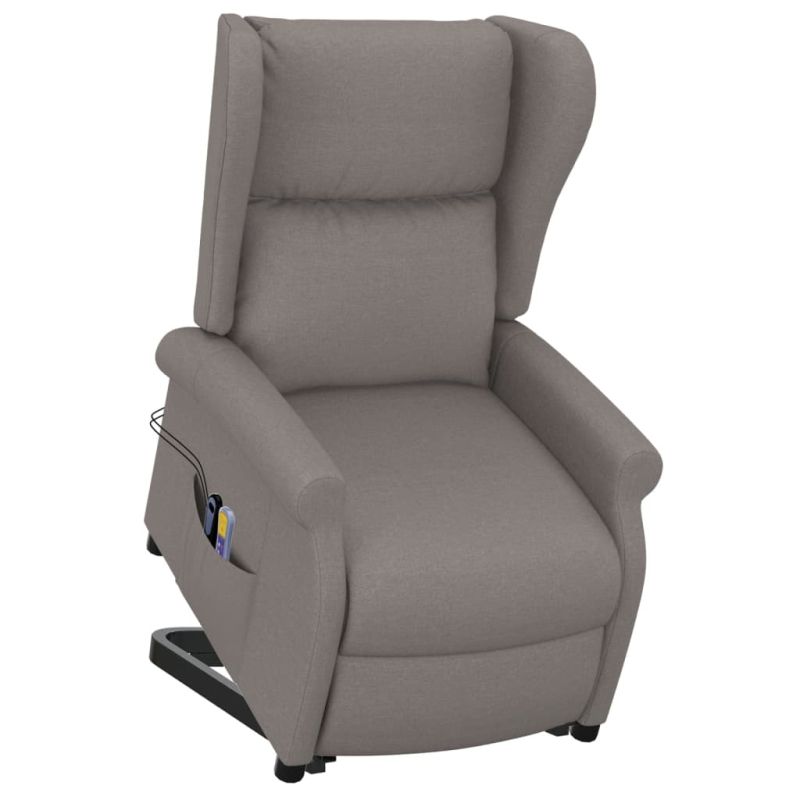 Отпуснете се и се потопете в този изключително удобен масажен стол с изправено положение! Функция за ръчно накланяне: Накланящият се стол е специално проектиран с 3 позиции за накланяне, така че можете да регулирате облегалката и поставката за крака ръчно според вашия комфорт.Функция за повдигане с електрическо захранване: Този накланящ се стол за възрастни хора е оборудван с електрически мотор за функцията за повдигане. Благодарение на функцията, която повдига целия стол нагоре, можете лесно да стоите, без да натоварвате гърба и коленете си, с ръчния контролер с 2 бутона.Функция за вибрация: Представените 6 масажни точки ви позволяват да се насладите на по-целенасочен масаж. Освен това, включеният ръчен контролер ви позволява да избирате различни програми за масаж. Функцията за масаж се захранва от USB конектора, но сертифицираният 5V USB източник на захранване не е включен.Комфортно изживяване при седене: Дебело подплатената седалка, облегалката и широките подлакътници, покрити с плат, осигуряват уютно и топло усещане, карайки ви да се чувствате обгърнати, докато седите. Платът се отличава с семпъл и изчистен вид, дишащ е и издръжлив.Солидна и стабилна рамка: Рамката, изработена от дърво и метал, осигурява здрава структура и стабилност. Този фотьойл с функция за отпускане е удобен и издръжлив.