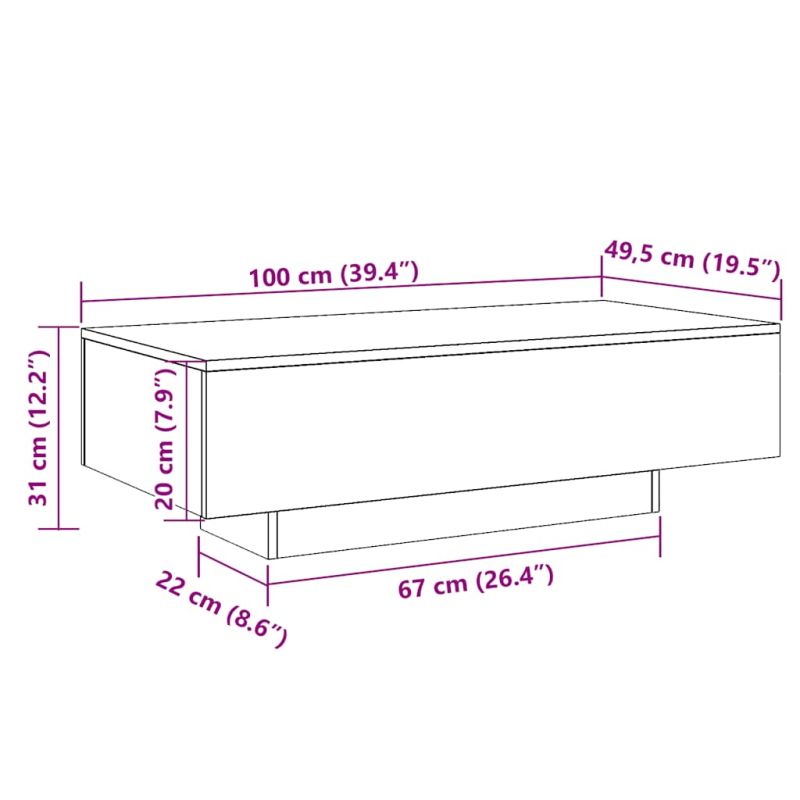 Кафе маса, бял гланц, 100x49,5x31 см, инженерно дърво