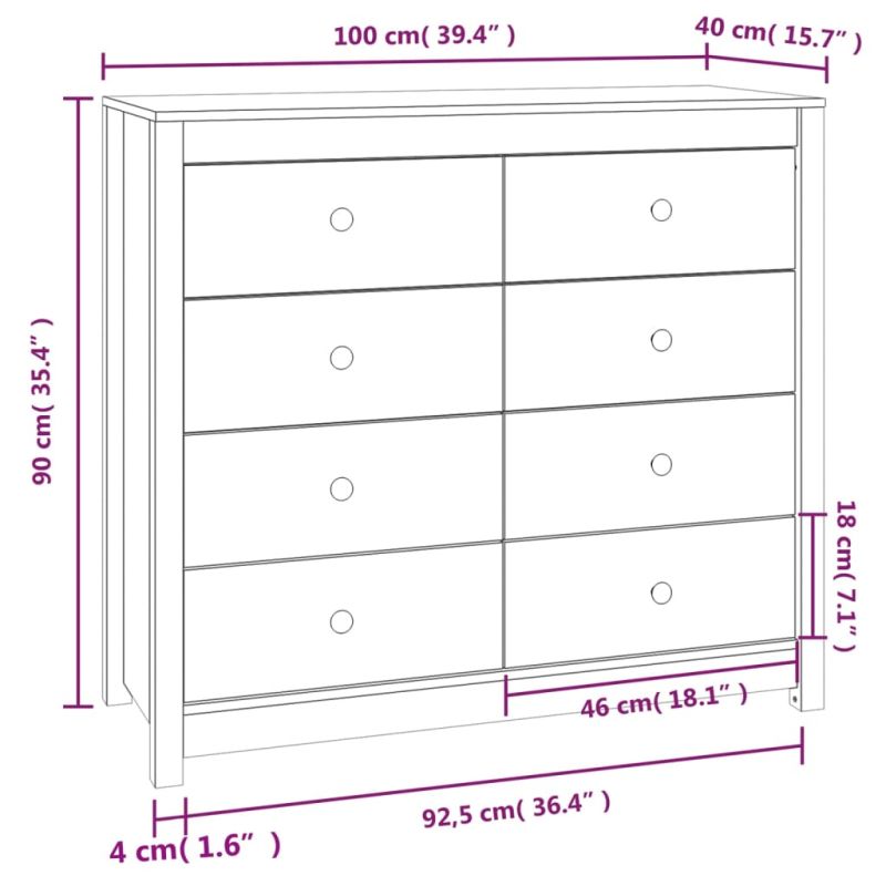 Този практичен дървен страничен шкаф е предназначен да задоволи вашите различни нужди и е идеално допълнение към вашата стая. Борово дърво масив: Този шкаф е изработен от борово дърво масив. Масивната борова дървесина е красив естествен материал. Боровата дървесина е с продълговати шарки, а чеповете придават на материала характерния му рустик вид.Достатъчно място за съхранение: Оборудван с просторни чекмеджета, бюфетът предлага достатъчно място за съхранение на различни ежедневни неща, добре организирани и леснодостъпни.Здрав плот: Върху този шкаф можете да поставяте любимите си снимки, декорации или цветя, за да разнообразите живота си. Внимание:За да предотвратите преобръщане, този продукт трябва да се използва с предоставеното устройство за закрепване на стена.