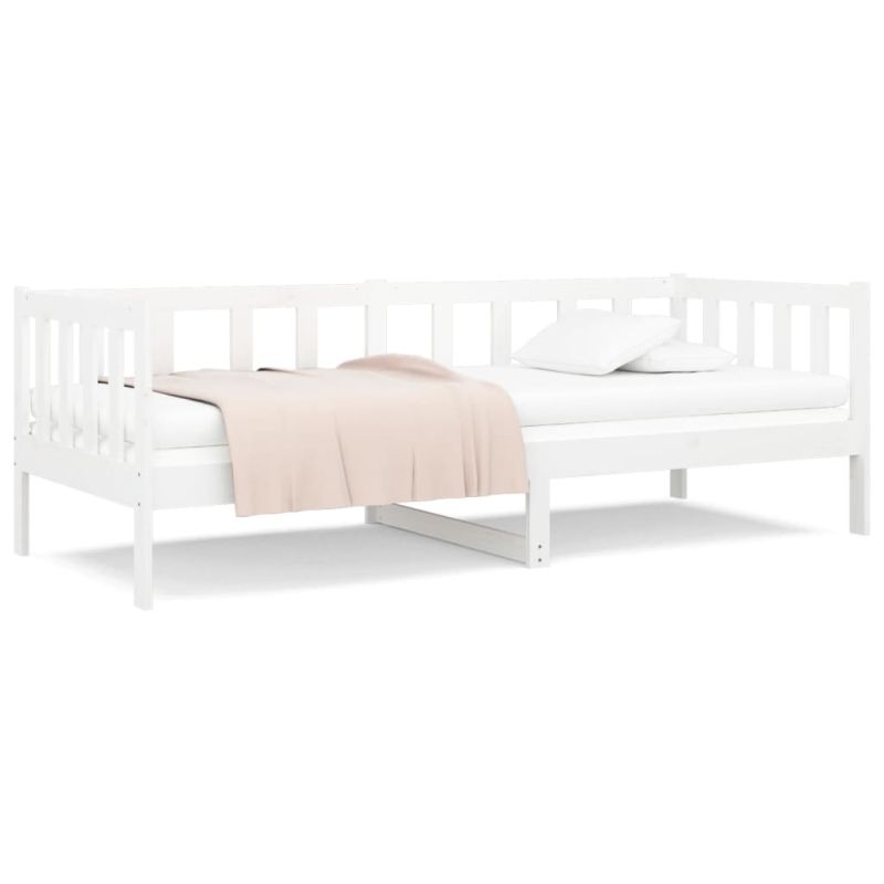 Дневно легло без матрак, бял, 90x190 см, борово дърво масив