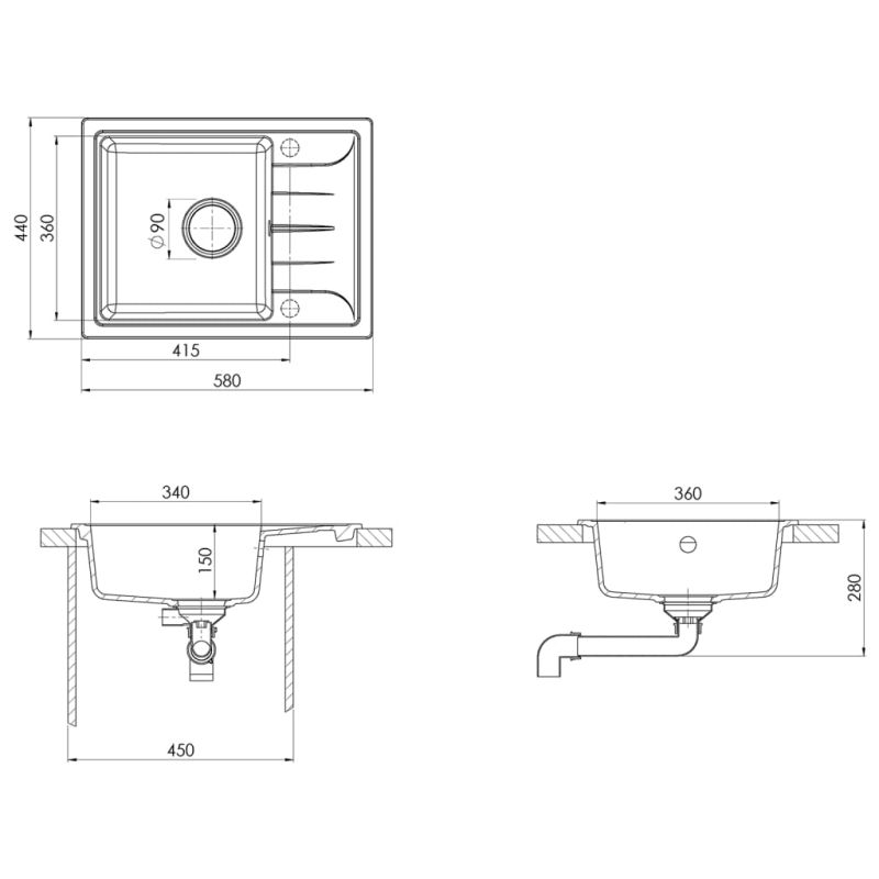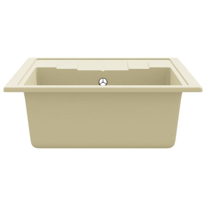 Тази кухненска мивка от гранит представлява класическо допълнение към вашия кухненски декор. Тя се отличава с екстра дълбоко корито с елегантен дизайн. Мивката е изработена от гранит, което я прави топлоустойчива, устойчива на надраскване и удари и лесна за почистване. Страничният отцедник ви дава допълнително място за вашите чинии. Тъй като мивката може да се завърта изцяло, тя може да бъде монтирана с коритото наляво или надясно. Включена е и цедка за сифон за лесно отстраняване на отпадъците. Дренажният отвор е с диаметър 90 мм. Тази кухненска мивка е подходяща за горен монтаж/монтаж върху плот.