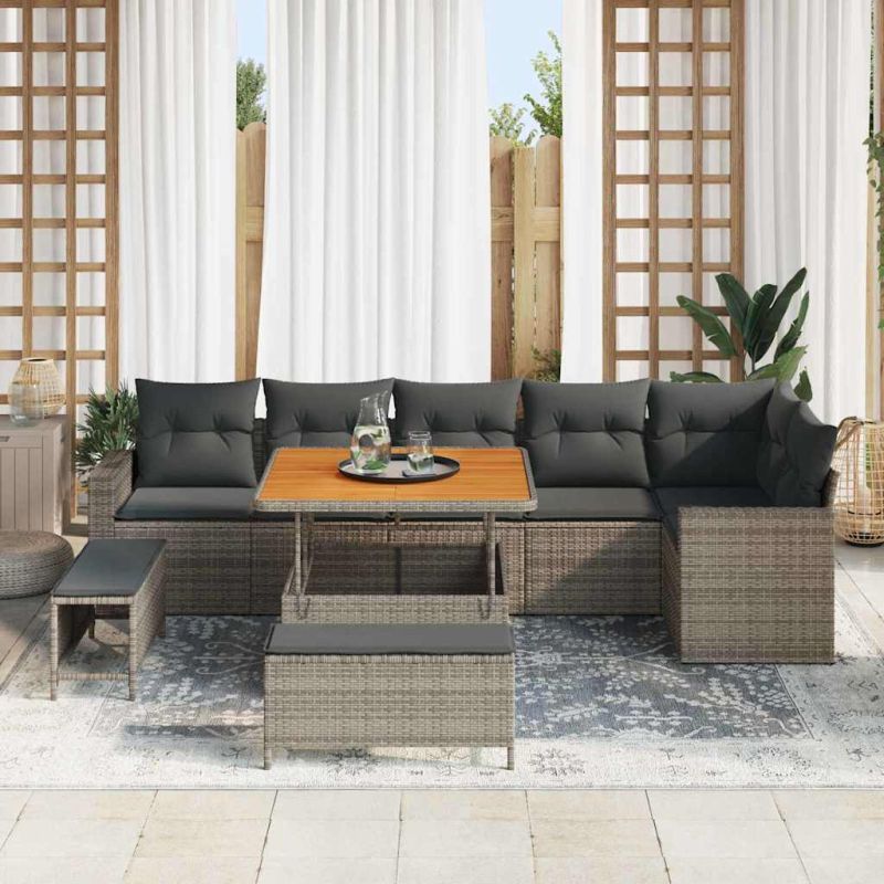 Градински Софа Комплект с възглавница със съхранение 9 pcs Сив