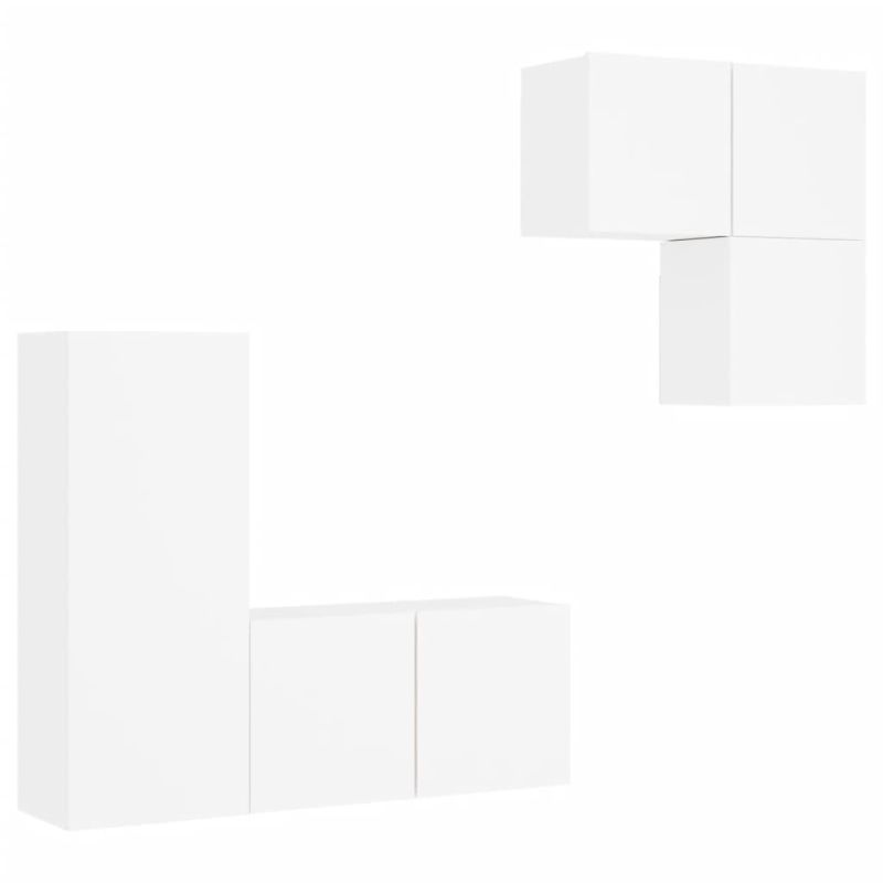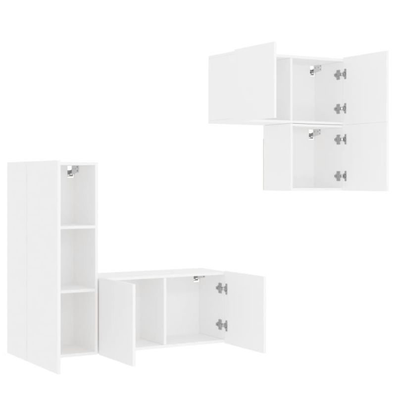 ТВ стенни модули, 4 части, бели, инженерно дърво