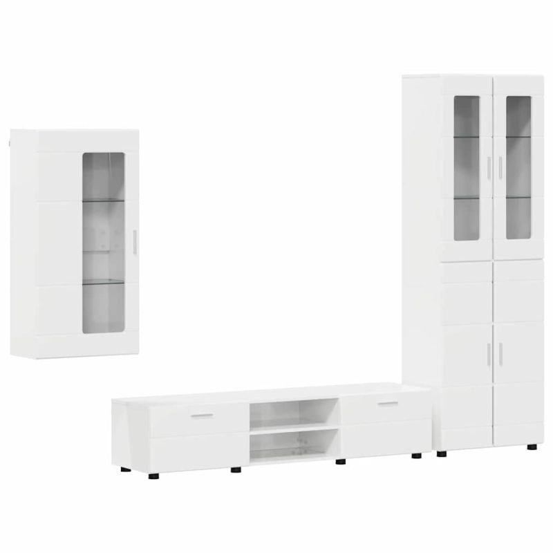 Комплект ТВ шкаф с чекмедже с рафт Лъскаво бяло Инженерно дърво