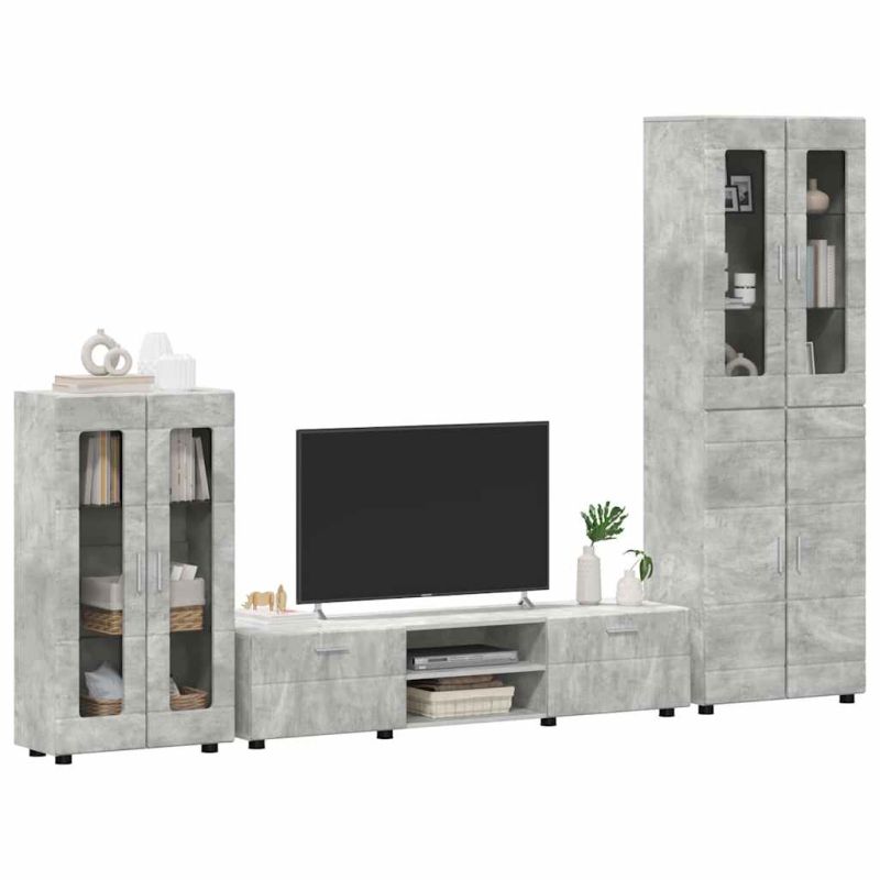 Начало Дом и градина Мебели Комплекти мебели Холови гарнитури Комплект ТВ шкаф с чекмедже Циментено сиво Инженерно дърво