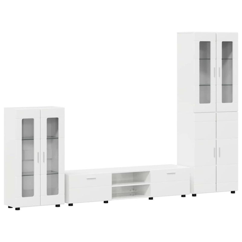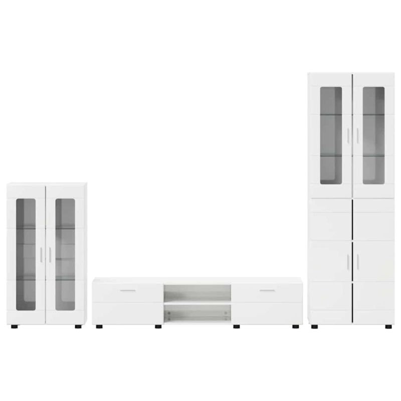 Комплект ТВ шкаф с чекмедже с рафт Лъскаво бяло Инженерно дърво