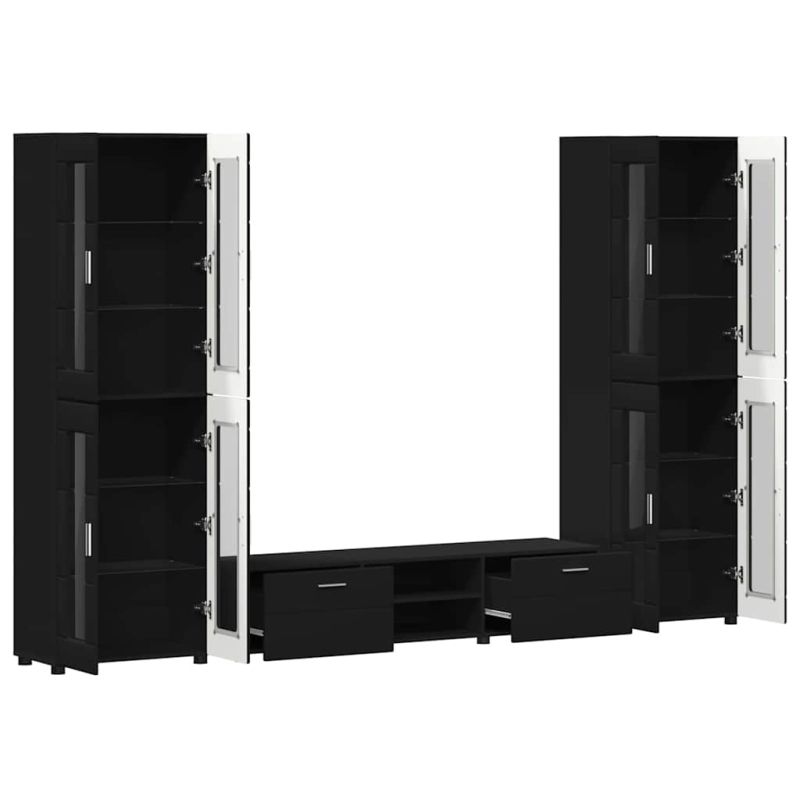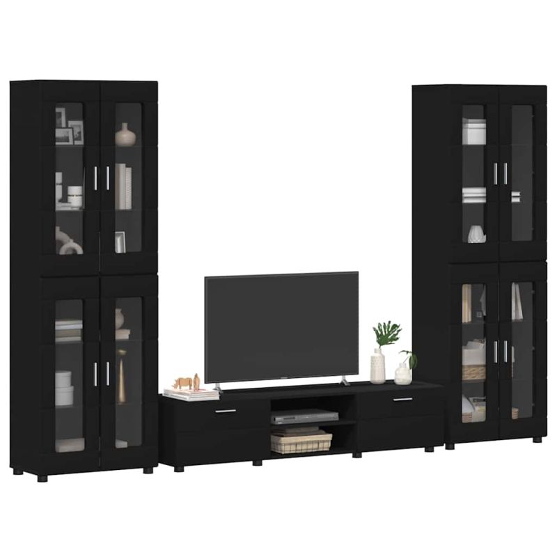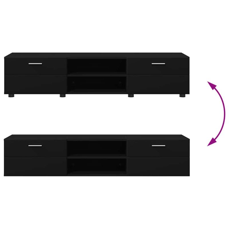 Комплект ТВ шкаф с чекмедже с рафт Черно Инженерно дърво