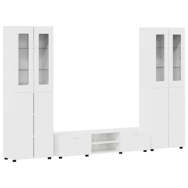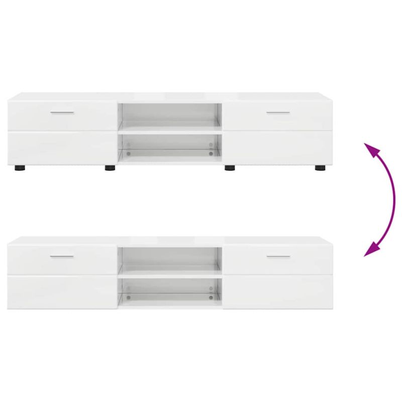 Комплект ТВ шкаф с чекмедже с рафт Лъскаво бяло Инженерно дърво