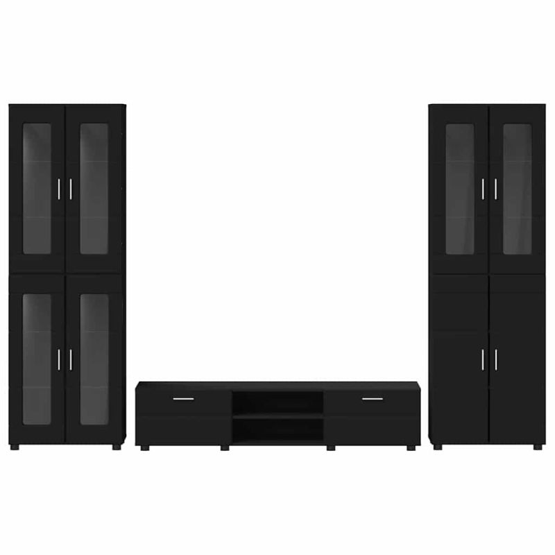 Комплект ТВ шкаф с чекмедже с рафт Черно Инженерно дърво