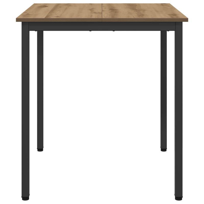 Тази правоъгълна трапезна маса съчетава модерна естетика и функционален дизайн, правейки я стилен акцент в трапезария или кухня. С чисти линии и минималистичен вид, тя е идеална за съвременните домове, които искат да добавят елегантност. Формата й е универсална и е практична за вечери или прояви. Инженерна дървесина Има здрава повърхност от инженерна дървесина, която е устойчива на ежедневно износване и лесна за почистване. Този материал добавя изящество и подобрява вида на твоето пространство. Черна метална рамка Стилната черна метална рамка осигурява стабилност и съвременен вид, който пасва на модерния декор в трапезарии и дневни. Квадратни метални крака Тези крака са проектирани да осигурят стабилност и дълготрайност, поддържайки масата здрава във времето. Проста функционалност Масата е лесна за употреба, а повърхността й се почиства лесно. Просто я избършеш с влажна кърпа и готово - перфектна е за заети домове. Изисква сглобяване Сглобяването изисква само отвертка и двама души, така че е бързо и просто, идеална е за тези, които искат бързо да подобрят интериора си.