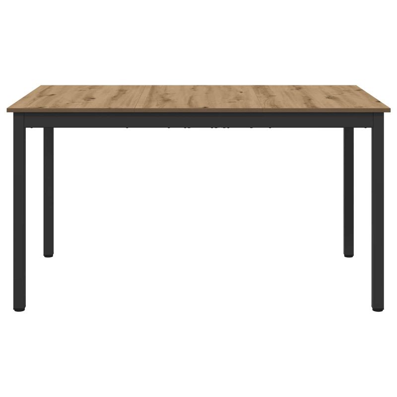 Тази правоъгълна трапезна маса съчетава модерна естетика и функционален дизайн, правейки я стилен акцент в трапезария или кухня. С чисти линии и минималистичен вид, тя е идеална за съвременните домове, които искат да добавят елегантност. Формата й е универсална и е практична за вечери или прояви. Инженерна дървесина Има здрава повърхност от инженерна дървесина, която е устойчива на ежедневно износване и лесна за почистване. Този материал добавя изящество и подобрява вида на твоето пространство. Черна метална рамка Стилната черна метална рамка осигурява стабилност и съвременен вид, който пасва на модерния декор в трапезарии и дневни. Квадратни метални крака Тези крака са проектирани да осигурят стабилност и дълготрайност, поддържайки масата здрава във времето. Проста функционалност Масата е лесна за употреба, а повърхността й се почиства лесно. Просто я избършеш с влажна кърпа и готово - перфектна е за заети домове. Изисква сглобяване Сглобяването изисква само отвертка и двама души, така че е бързо и просто, идеална е за тези, които искат бързо да подобрят интериора си.