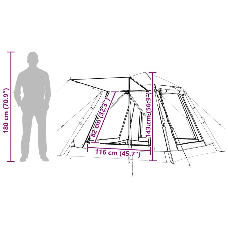 Тази мигновена палатка е практично решение за любителите на открито, които искат комфорт, докато къмпингуват. С лесна настройка и издръжлива конструкция, идеална е за летни приключения. Тази палатка за трима предлага уютно убежище срещу елементите и има модерен дизайн, който отлично се вписва в различни открити среди. Компактната и портативна структура я прави чудесен избор за хора, които обичат приключения и искат надеждно място за отдих. Водоустойчив полиестерен материал Изработен от 185T полиестер с PU покритие, осигурява пълна водоотблъскваща защита, дори при неочаквани дъждове, предпазвайки ви и вещите ви от намокряне. Освен това, полиестерът е УВ устойчив, подходящ за всякакви сезони. Цялостен пакет с компоненти Включва предварително прикрепени стълбове и подвижен капак против дъжд, шест въжета за по-добра стабилност и удобна чанта за носене. 10 колчета осигуряват допълнителна стабилност и спокойствие, независимо от времето. Умни дизайнерски функции Две линии с цип за лесен достъп и вентилация, и два мрежести джоба за основни вещи. E-Port улеснява достъпа до електричеството, което добавя комфорт на вашето открито изживяване, а системата за бързо разпъване е безпроблемна. Практични приложения Идеална за летен къмпинг, туризъм, фестивали и уикенд бягство. Специфичните й характеристики я правят перфектна за търсещите надеждно убежище по време на различни открити дейности. Прости инструкции за поддръжка Само избърсвайте с влажна кърпа, за да поддържате палатката чиста. Няма нужда от агресивни почистващи средства; редовното почистване осигурява дълготрайност и свеж вид.