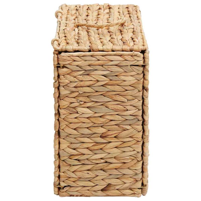 Този държач за тоалетна хартия е универсално решение за съхранение, подходящо за всякакви закрити пространства – всекидневната, спалнята или офиса. Има модерен, но уютен вид, идеално се вписва в рустикалния стил благодарение на естествения си кафяв цвят и текстурирана повърхност, изработена от воден хиацинт. Естествен воден хиацинт: С красив завършек от взаимосвързан воден хиацинт, този продукт предлага успокояваща естетика и приятен усещане. Неговата естествена съставка се вписва в различни цветови комбинации и стилове, добавяйки земен полъх в дома. Ергономични дръжки: Държачът е с кафяви дръжки за удобно хващане, което прави преместването му лесно и практично. Здрава стоманена рамка: С надеждна стоманена конструкция, този държач осигурява дълготрайна стабилност. Рамката подсилва визуалния вид, така че издържа на ежедневна употреба без проблеми. Екологични материали: Изработен от устойчиво набавени материали, идеален за онези, които търсят стил и грижа за природата. Дизайнът му съчетава функционалност и естетика. Лесно сглобяване: Държачът е проектиран за бързо сглобяване от един човек и с малко инструменти - готов е за употреба почти веднага след доставката.