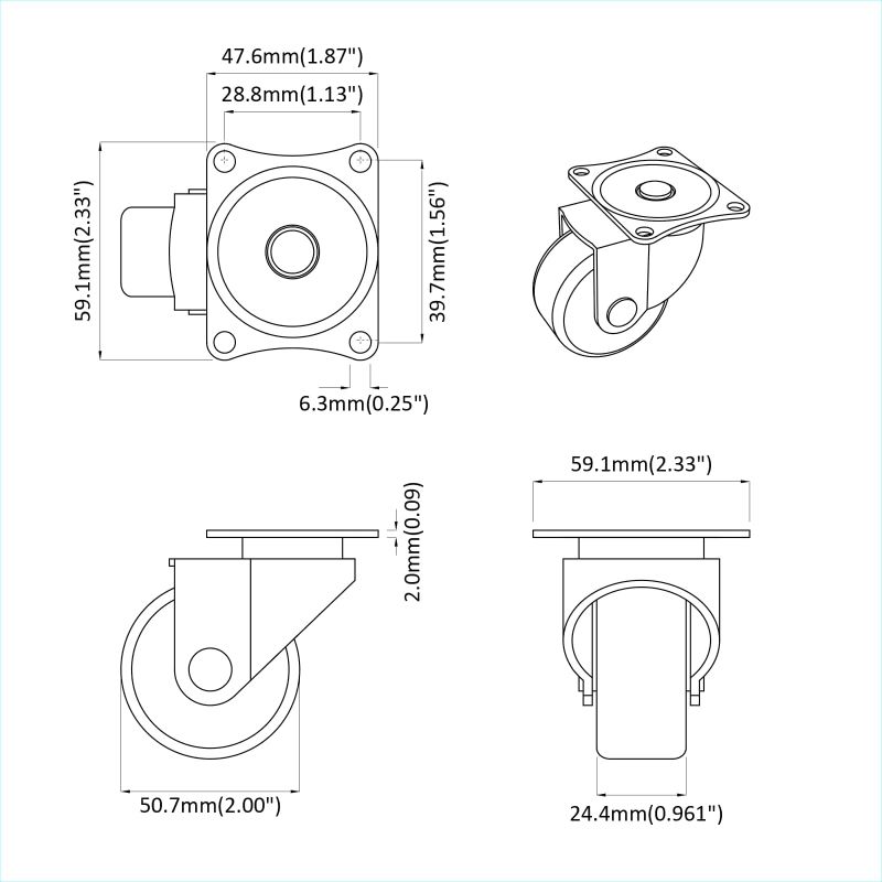 Въртящо се колело 2 pcs Сребрист 60 x 60 x 50 мм