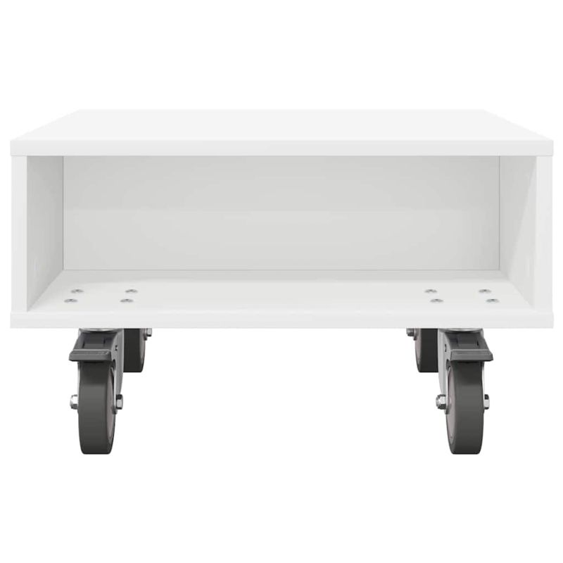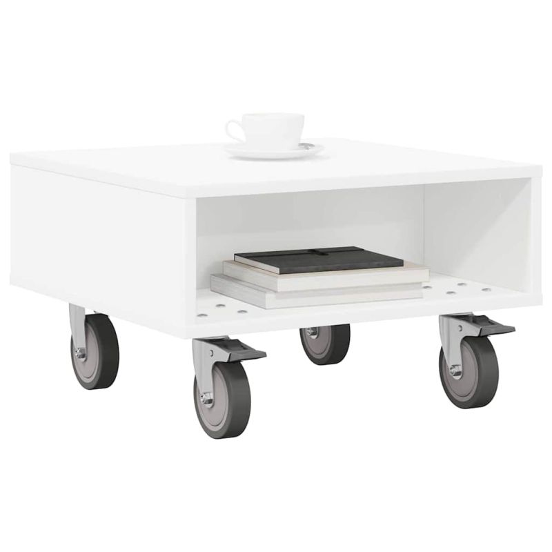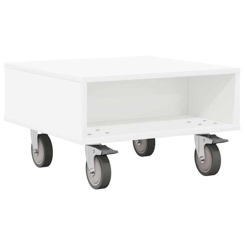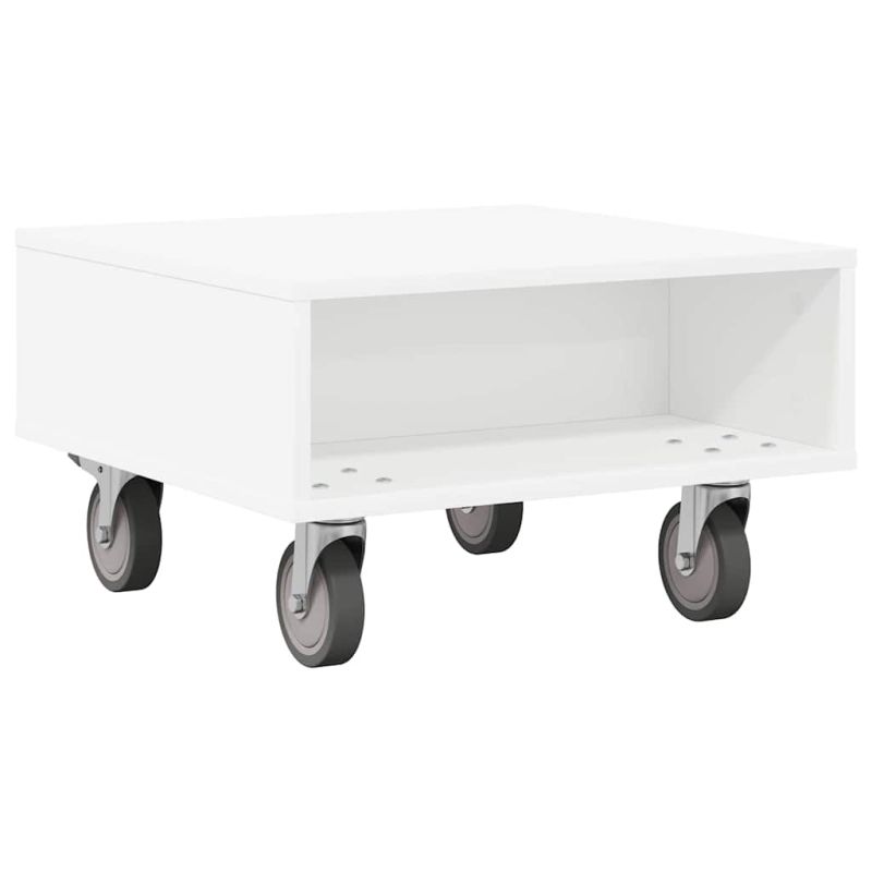 Странична маса с колела Бяло 50 x 50 x 30 см Инженерно дърво