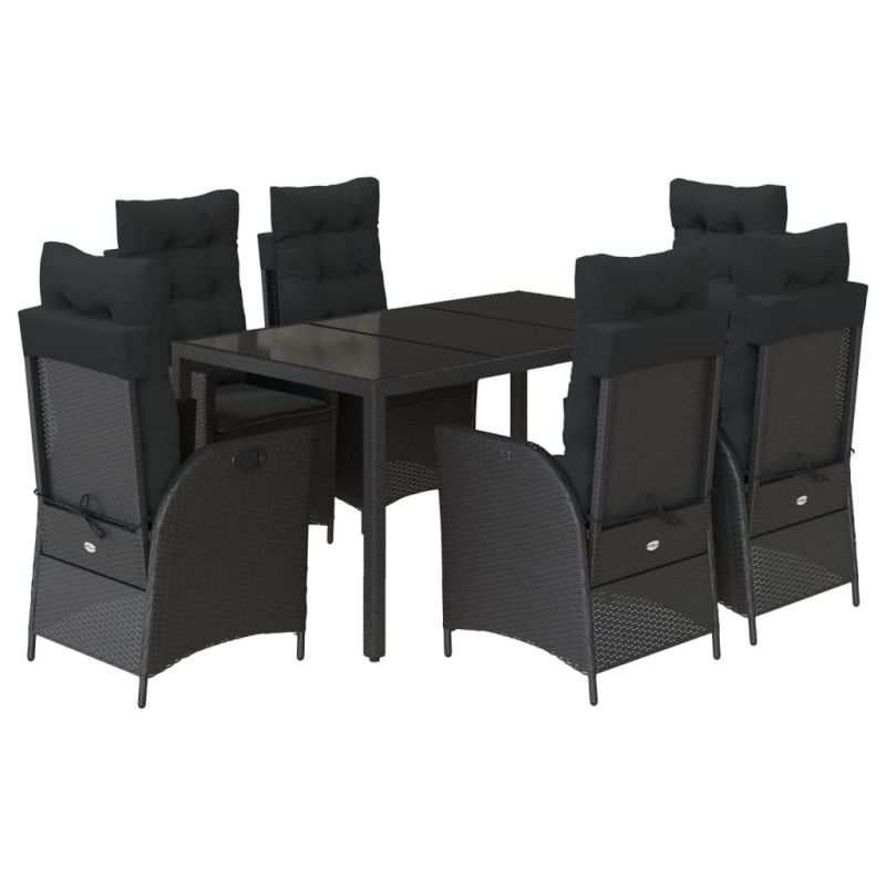 Градински трапезен комплект 7 части възглавници черен полиратан