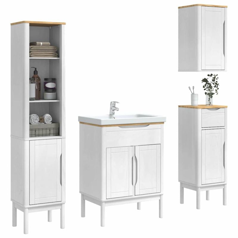 Комплект мебели за баня с рафт 4 pcs Бяло Солидно борово дърво