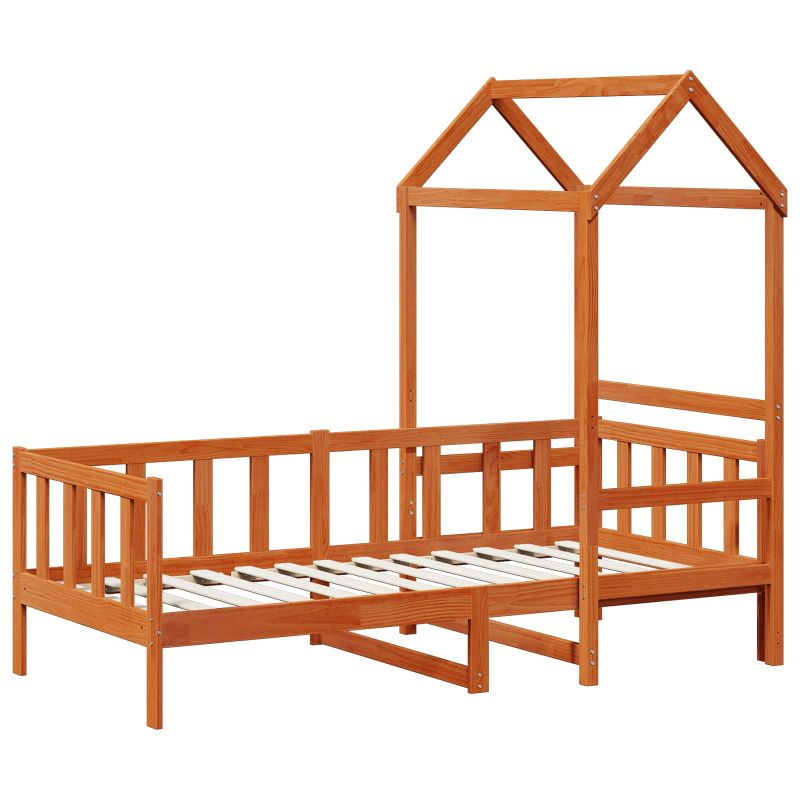 Модерният комплект легло е елегантен мебелен артикул, който допълва всяка спалня с красивия си и чист дизайн. Изработен е от масивна борова дървесина, което прави леглото както приятно на вид, така и здраво. Допълнението на покрив придава уникален архитектурен чар, който го прави идеален за различни стилове на интериора, от минималистични на градски апартаменти до уютни предградски домове. Перфектен е за всеки, който цени комбинацията от стил и функции. Издръжлива борова дървесина: Съставена от солидна борова дървесина, това легло осигурява дълготрайност и надеждност. Натуралният вид на борова дървесина лесно се вписва в различни интериорни стилове, показвайки качество и издръжливост. Здравината му осигурява дългосрочна употреба, без нужда от подматрачна рамка. Квадратен крак: Легловата рамка включва квадратни крака, направени от масивна борова дървесина, добавяйки модерен и минималистичен вид. Тези крака осигуряват стабилност и баланс, като предлагат сигурност и удобство, дори при често ползване. Лесният дизайн е в синхрон с актуалните тенденции и прибавя елегантност в пространството. Елемент покрив: Този диван с привлекателен покрив добавя индивидуалност и чар на помещението. Този акцент може да се стилизира по различни начини, правейки го интересен избор за любителите на разнообразния декор. Архитектурният му стил прави дивана централна част на стаята. Изискваща сглобка: Леглото трябва да бъде сглобено от двама с отвертка. С ясния процес на сглобяване, структурата става надеждна и стабилна. Лесните инструкции гарантират бързо сглобяване, за да може веднага да се насладите на леглото. Инструкции за поддръжка: За да поддържате дивана в добро състояние, следвайте прости стъпки. Само с бързо избърсване с суха кърпа, той остава свеж и привлекателен, удължавайки неговия живот. Лесната поддръжка гарантира дълготрайно удовлетворение във всякакви интериори.