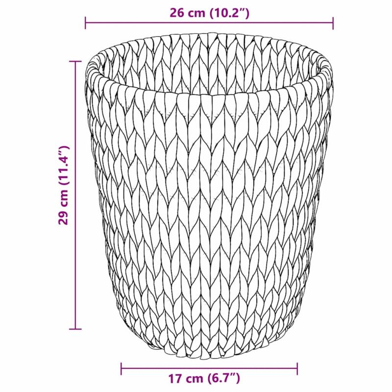 Тези кошници за отпадъци със сигурност ще придадат селски усет на дома ви, предлагайки не само функционалност, а и чар. С естествения си цвят, те лесно се вписват в интериори в кънтри стил. Цилиндричната форма и текстурата им придават уникален вид, идеални са за всекидневна или спалня. Перфектни са за хора, които търсят практичност, но и искат да добавят декоративен елемент в пространството си. Материали: Кошниците са направени от воден хиацинт, който придава естествен и селски вид. Също така, материалът е много издръжлив и добър за дългосрочно ползване. Включени компоненти: Вас ще осигурят две кошници за отпадъци, готови да бъдат използвани веднага. Те са перфектни за организация на документи или за съхранение на малки предмети, без да жертват визията на интериора. Характеристики / Функция / Дизайн: Вградена дръжка за лесно пренасяне е плюс, докато цилиндричната форма помага за оптимално използване на пространството в стаята. Препоръчителни употреби: Идеални за всекидневни и спални, тези кошници са гъвкави и се вписват навсякъде. Могат да са декоративни и практични, без проблем. Грижа и поддръжка: Лесно е да се грижите за тях: просто ги бършете с суха кърпа. Избягвайте силни химикали, за да запазите текстурата и вида им.