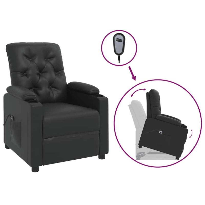 Облегнете се и се отпуснете в този изключително комфортен изправящ стол! Функция за ръчно накланяне: Накланящият се стол е специално проектиран с 3 позиции на наклон, така че да можете да регулирате ръчно облегалката и поставката за крака според вашето удобство.Функция за повдигане: Този стол реклайнер е оборудван с електрически двигател с функция за повдигане. Благодарение на ръчното дистанционно управление с 2 бутона и функцията, която избутва целия стол нагоре, можете лесно да се изправите, без да натоварвате гърба и коленете си.Удобно седене: Дебело подплатената седалка, облегалката и широките подлакътници, покрити с изкуствена кожа, осигуряват уютно и топло усещане, което ви кара да се чувствате като в прегръдка, докато седите. Изкуствената кожа е много издръжлив материал. Устойчива е на петна, което я прави лесна за почистване с влажна кърпа. Гладката повърхност също така придава луксозен вид и красотата на истинската кожа.Здрава и стабилна рамка: Рамката, изработена от дърво и метал, осигурява здрава структура и стабилност. Този накланящ се фотьойл е удобен и издръжлив.