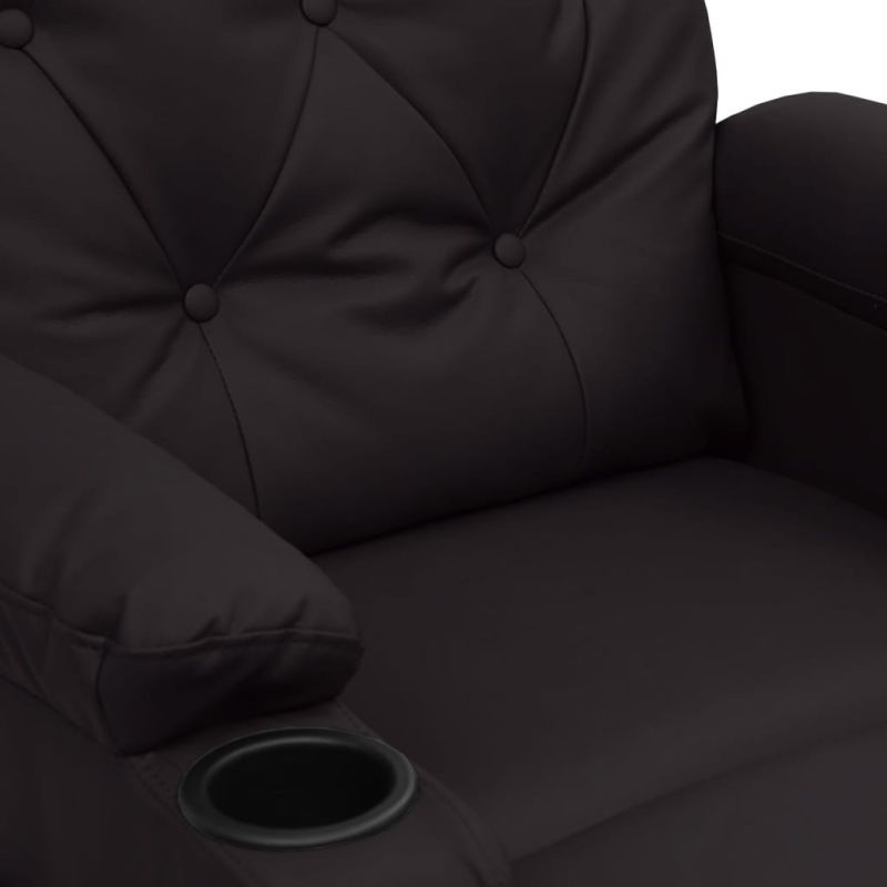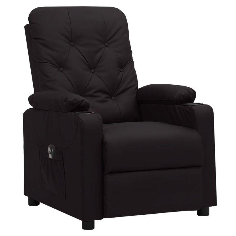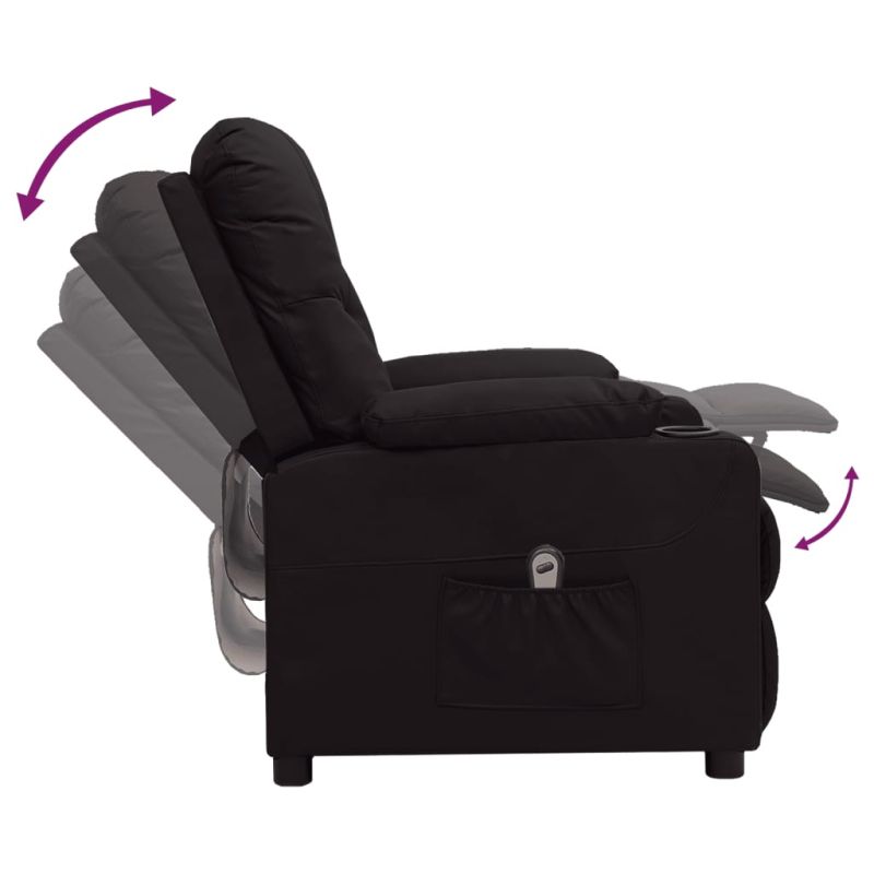 Облегнете се и се отпуснете в този изключително комфортен електрически наклоняем стол! Електрическа функция за накланяне: Столът с облегалка е оборудван с електрически мотор за функция за накланяне. Разполага с 3 позиции на легнало положение, така че можете лесно да регулирате облегалката и поставката за крака с включеното ръчно управление с 2 бутона според вашето удобство.Удобно седене: Дебело подплатената седалка, облегалката и широките подлакътници, покрити с изкуствена кожа, осигуряват уютно и топло усещане, което ви кара да се чувствате като в прегръдка, докато седите. Изкуствената кожа е много издръжлив материал. Устойчива е на петна, което я прави лесна за почистване с влажна кърпа. Гладката повърхност също така придава луксозен вид и красотата на истинската кожа.Здрава и стабилна рамка: Рамката, изработена от дърво и метал, осигурява здрава структура и стабилност. Този накланящ се фотьойл е удобен и издръжлив.