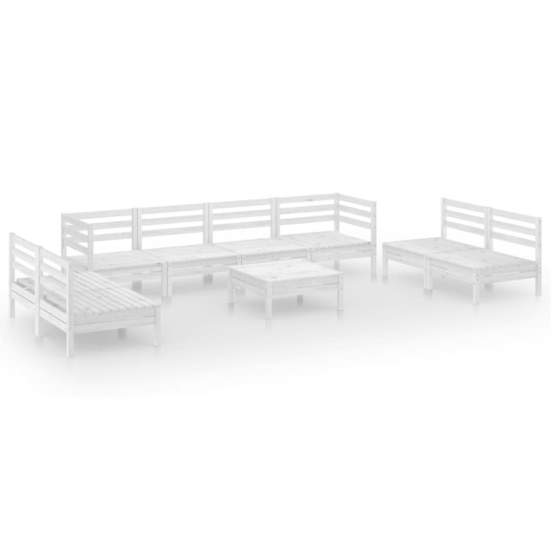 Градински лаундж комплект, 9 части, бял, бор масив