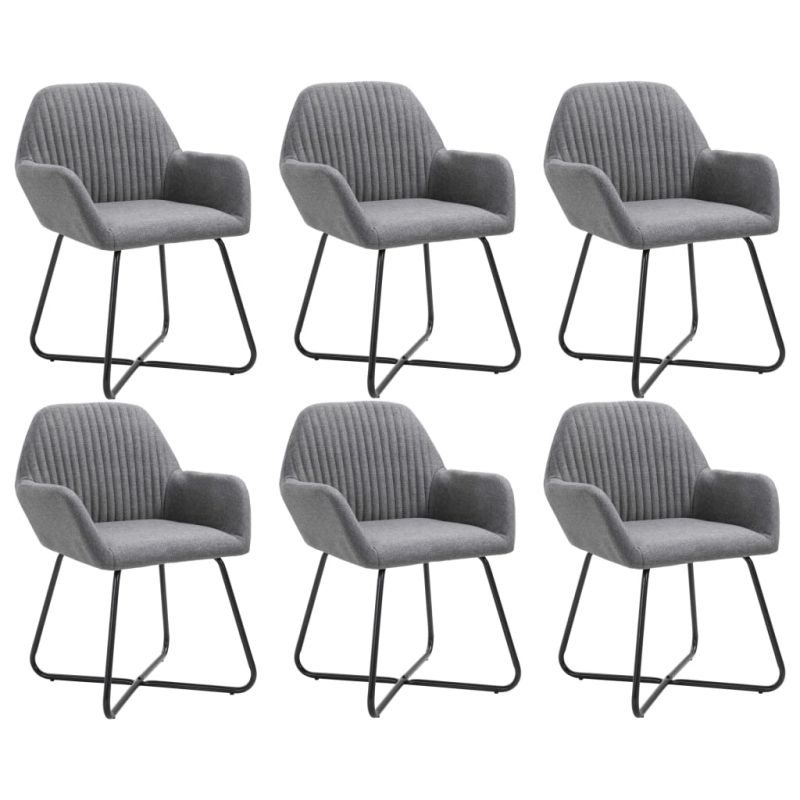 Добавете модерен щрих към вашата трапезария или хол с нашите удобни и стабилни трапезни столове! Изработен от качествен текстил, този комплект от 6 трапезни стола е естетически и ергономично проектиран, за да внесе уютен акцент в дома ви. Той осигурява удобно място за вашето семейство да вечеря в трапезарията или да чете и да си почива в хола. Благодарение на меката седалка, подлакътници и облегалка, нашият стол със сигурност ще ви донесе оптимален комфорт при седене. Освен това прахово боядисаните стоманени крака също осигуряват супер стабилност и гарантират отлична издръжливост на стола. Доставката включва 6 трапезни стола.