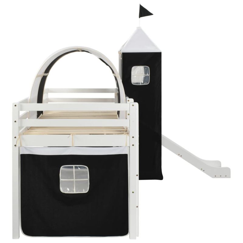 Високо детско легло с пързалка и стълба, бор, 97х208 см