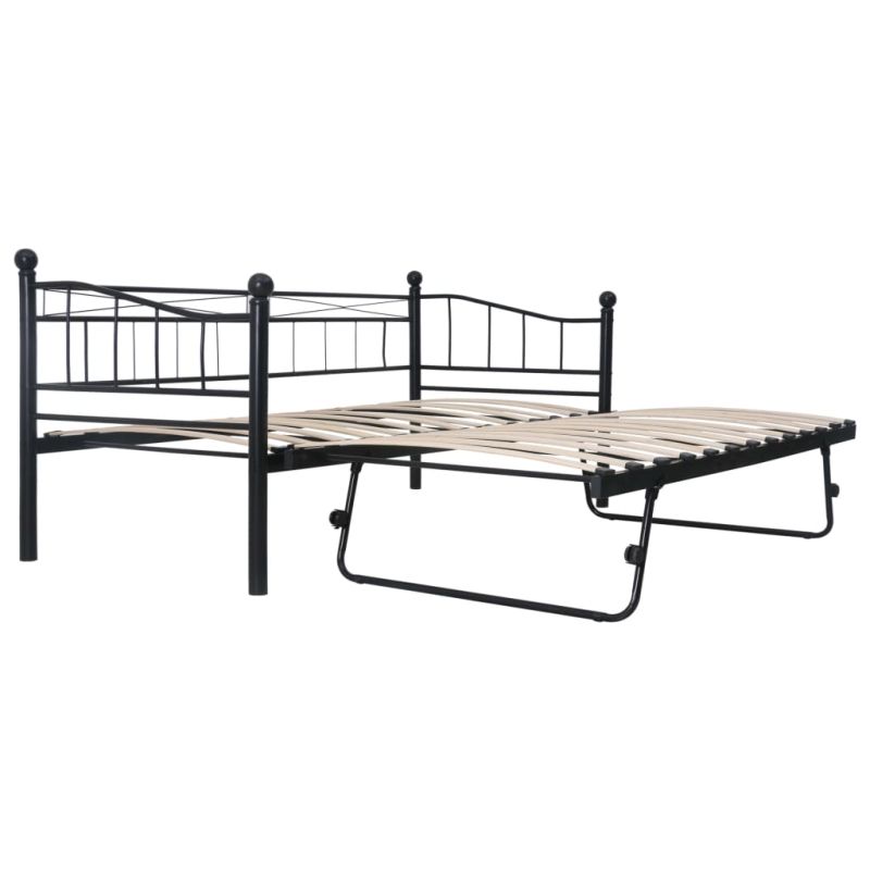 Рамка за легло, черна, стомана, 180x200/90x200 см