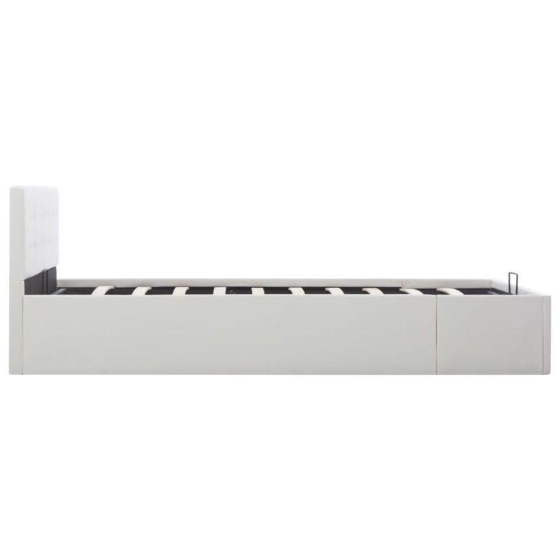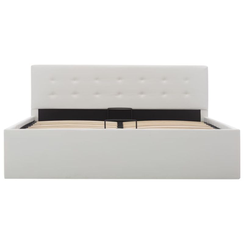 Легло с повдигащ механизъм, бяло, изкуствена кожа, 140x200 cм