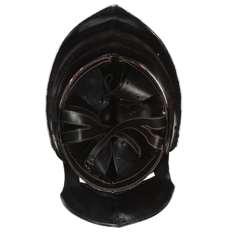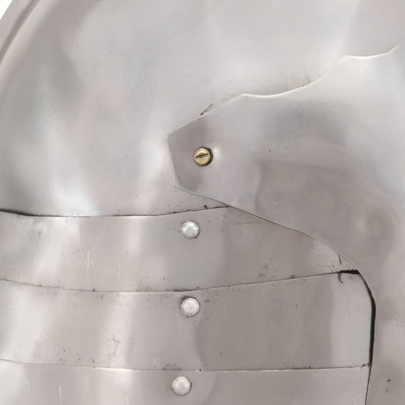 Тази антична военна каска е отлична за ЛАРП (ролева игра на живо), косплей, партита на историческа тема, Хелоуин парти, театрални реквизити и исторически възстановки. Бойният шлем е точна реплика на оригинален немски рицарски шлем, наречен Шалер. Изработен от полирана стомана с дебелина 18 gauge, той съчетава античен стил и здрав материал в привличащ вниманието шлем, който идеално ще пасне на вашия рицарски тоалет. Каската Шалер е с тънък отвор за очите, откъдето да виждате и удължена задна плоча за защита на врата. При това тя е с атрактивен дизайн.