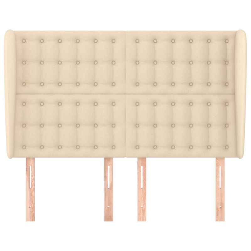 Горна табла за легло с уши, кремава,147 x 23 x 118/128 см, плат