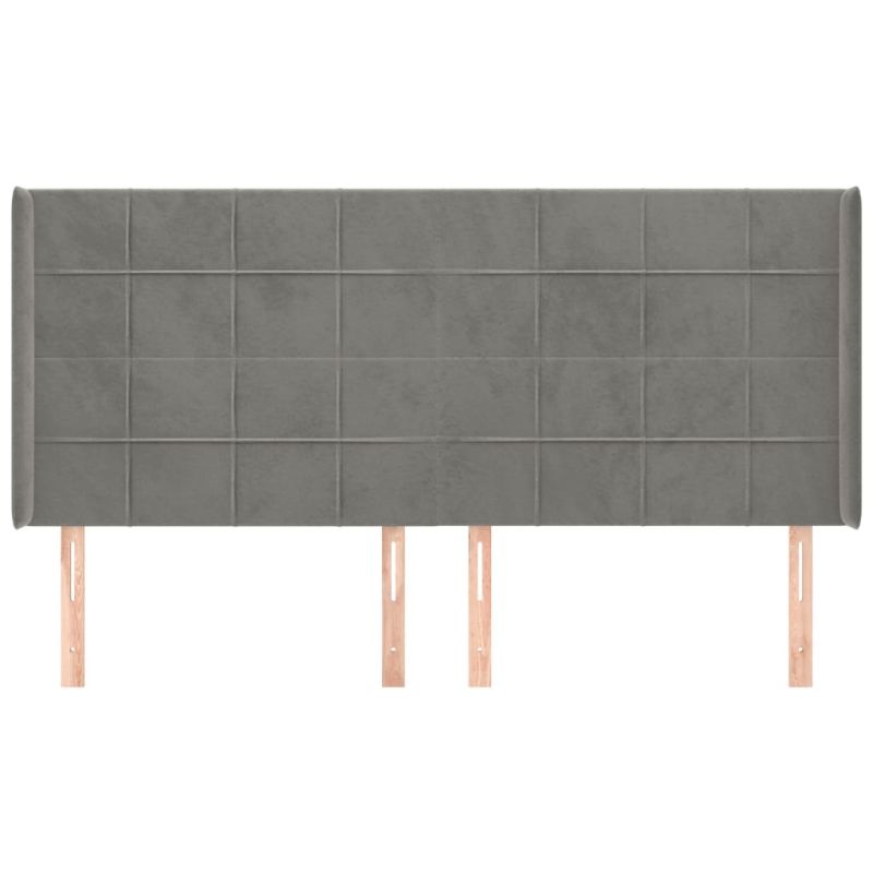 Горна табла за легло с уши, светлосива,203x16x118/128см, кадифе