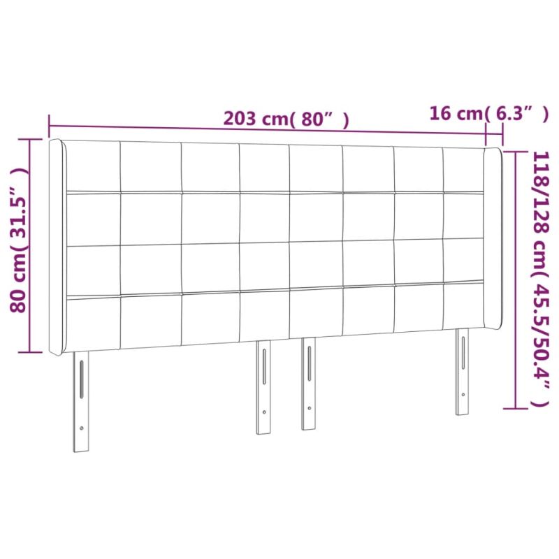 Начало Мебели Легла и аксесоари Табли за легла Горна табла за легло с уши, светлосива,203x16x118/128см, кадифе