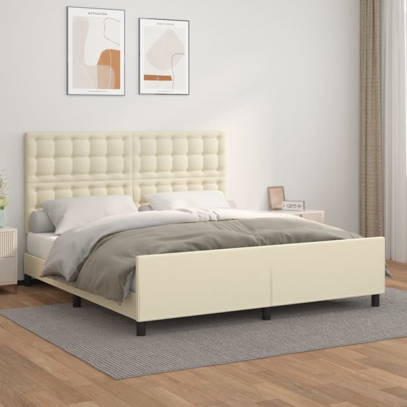 Рамка за легло с табла, кремава, 180x200 см, изкуствена кожа