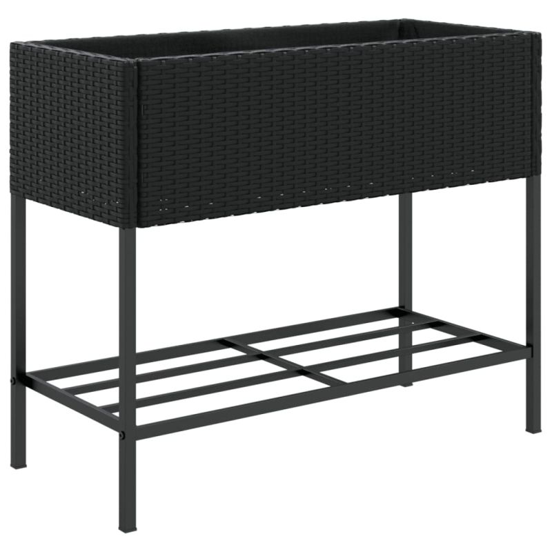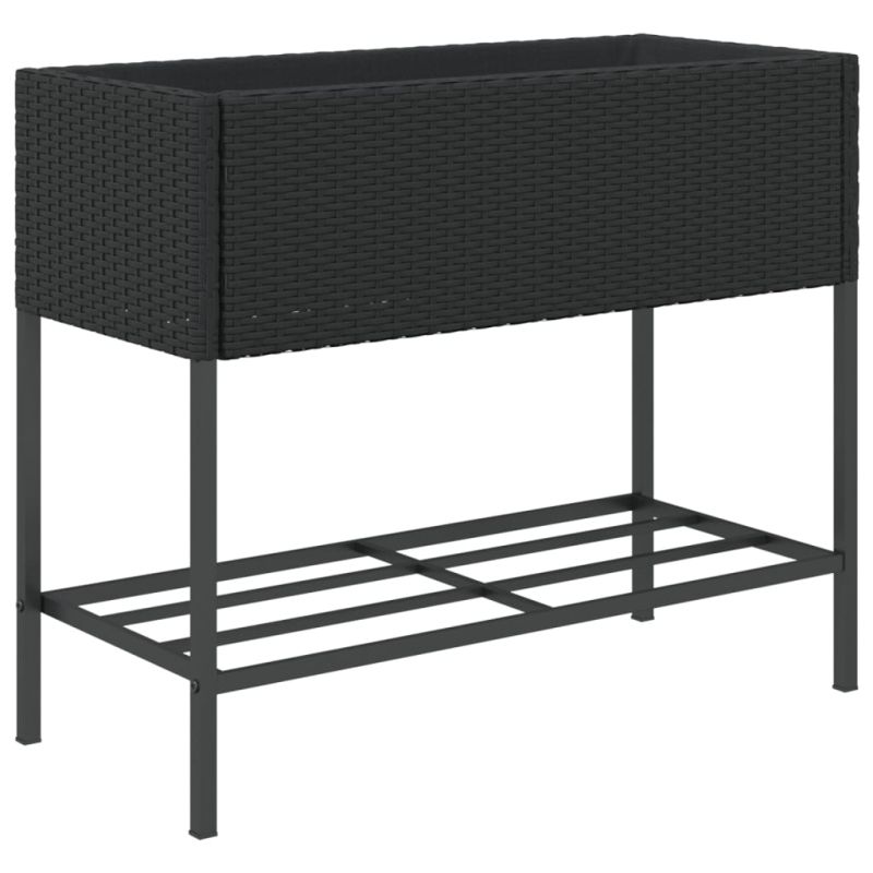 Градински кашпи с рафт 2 бр черни 90x40x75 см полиратан