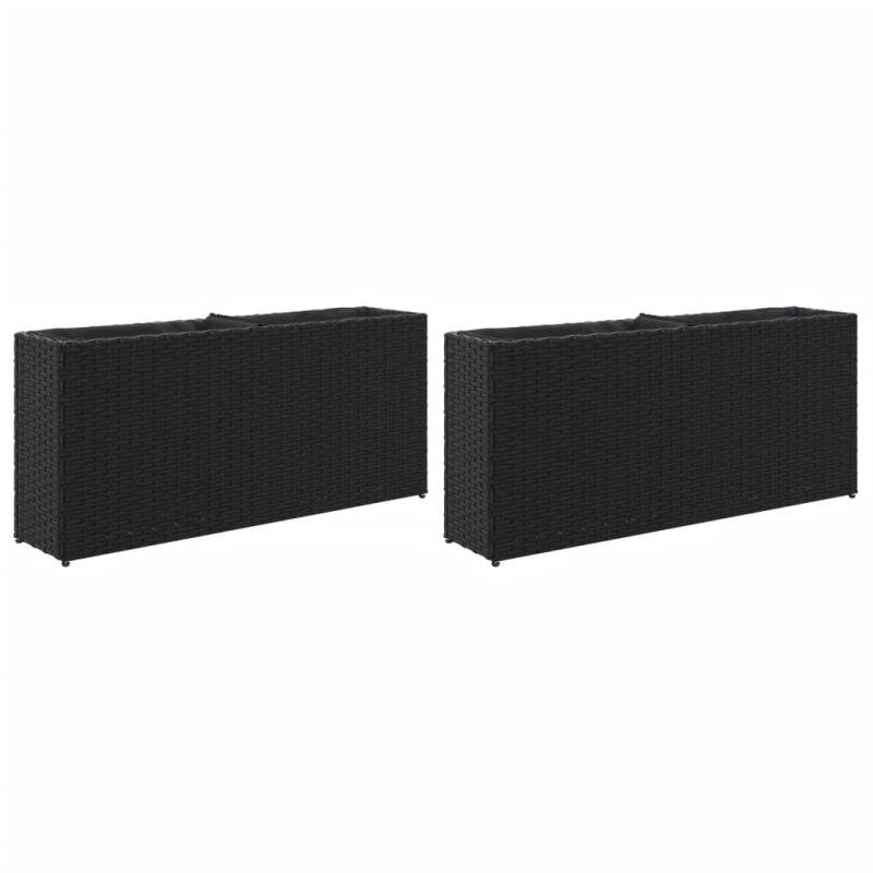 Градински плантери с 2 саксии 2 бр черни 90x20x40 см полиратан