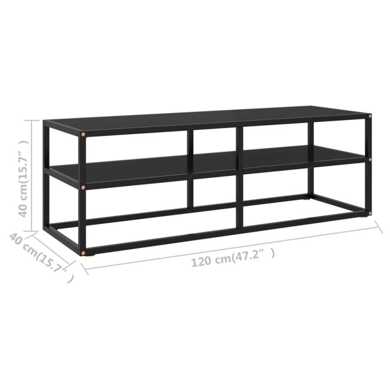 ТВ шкаф, черен, черно стъкло, 120x40x40 см