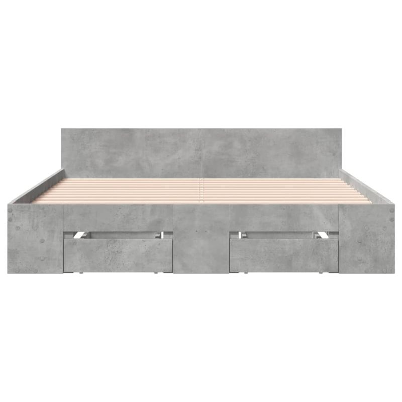 Рамка за легло с чекмеджета, бетонно сива, 135x190 см