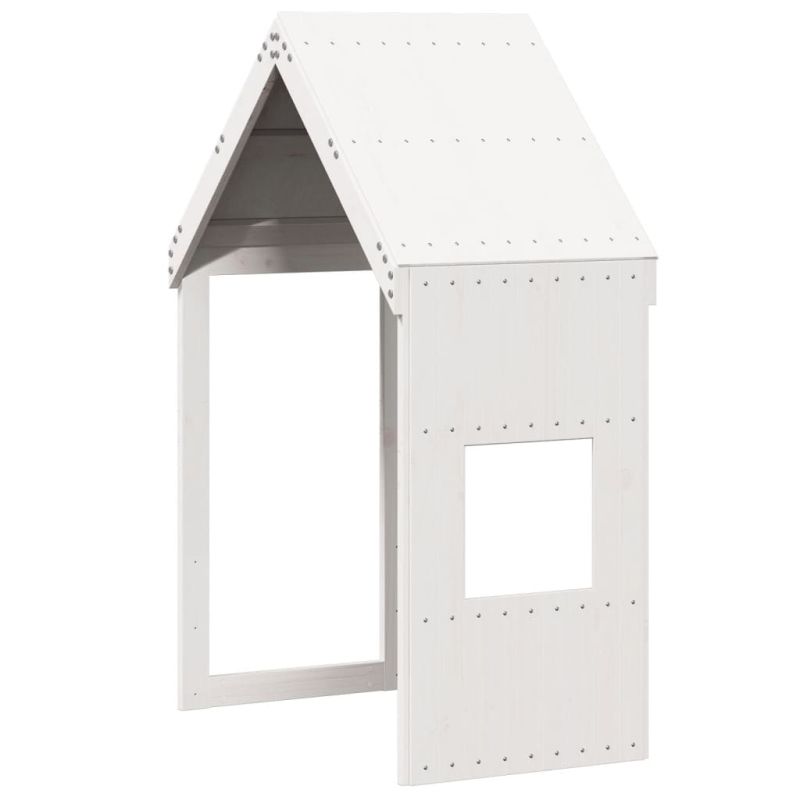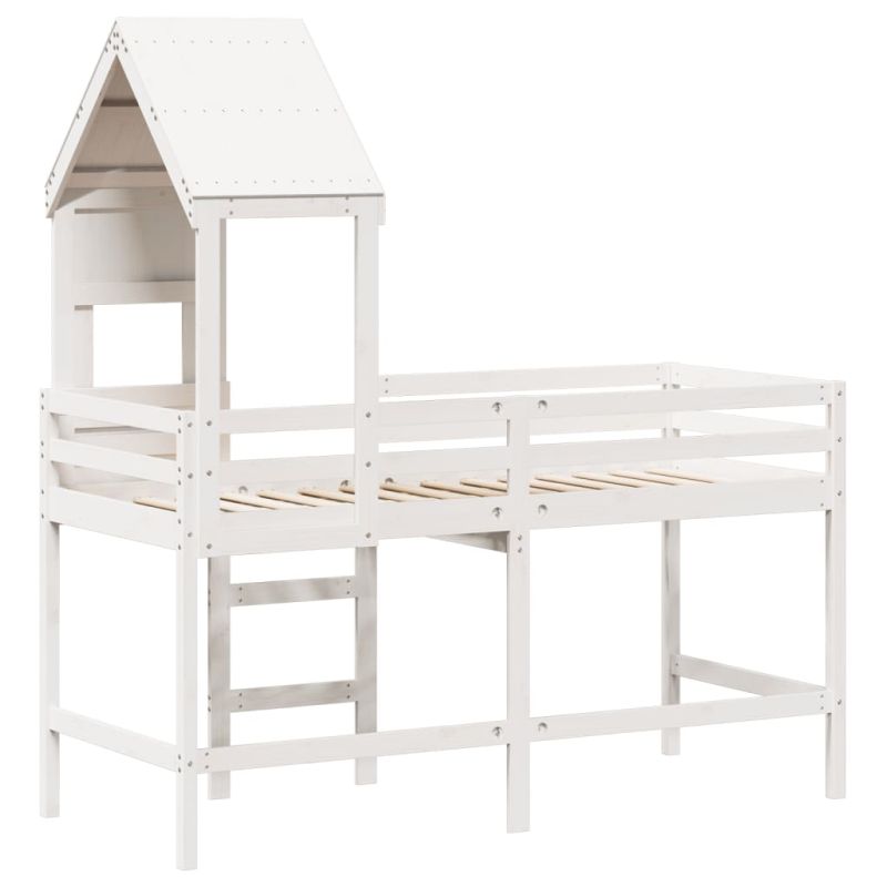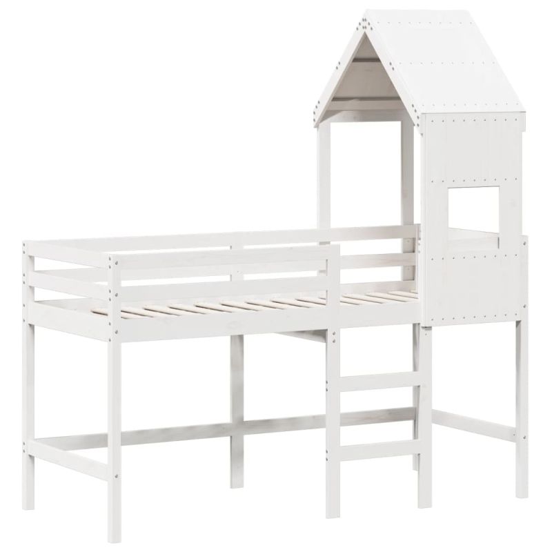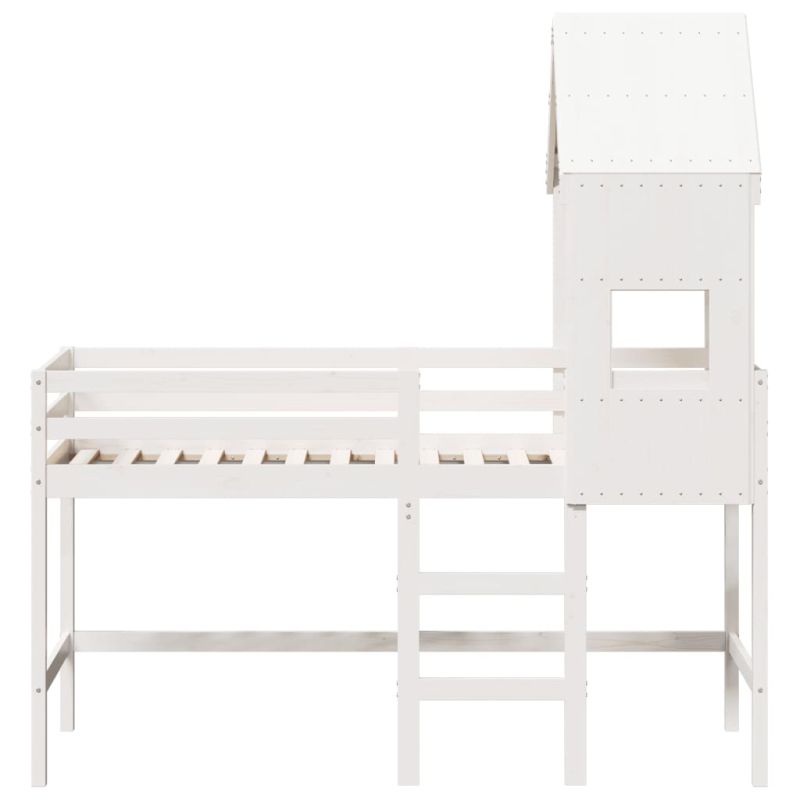Таванско легло със стълба и покрив, бяло, 90x190 см, бор масив