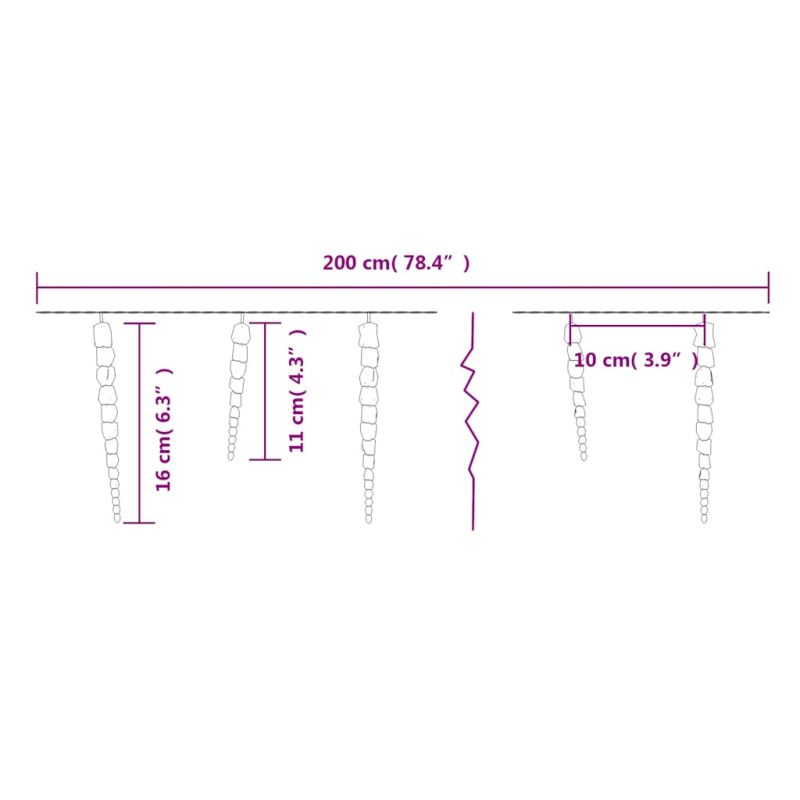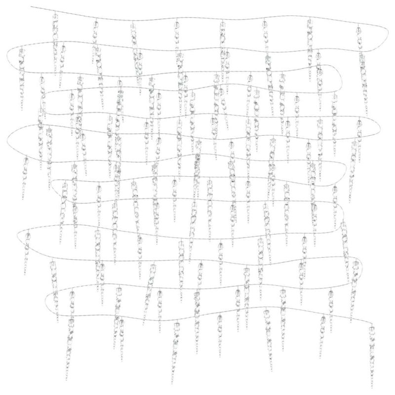 Тези коледни лампички ледени висулки са перфектното решение за декорация на вашата градина, веранда или входна врата. Тяхното предназначение е да направят вашия дом по-красив и по-ярък. Тези вериги от ледени висулки са изработени от акрил, който им придава вид на истински лед. Тези декоративни лампички са оборудвани с енергоспестяващи светодиоди, което ги прави издръжливи за дългосрочна употреба. Те имат 8 различни светлинни ефекта: комбинирано, вълни, последователно, бавно светене, мигане, бавно избледняване, блещукане и непрекъснато светене. Включеното в комплекта дистанционно управление ви позволява да регулирате различните режими на светене от разстояние. Ледените лампички са изключително подходящи за употреба както на закрито, така и на открито. Забележка: Включеното USB не е водоустойчиво, така че тази част трябва да избягва водата, но благодарение на удължителния кабел светещите висулки могат да се използват на открито, тъй като и кабелът, и продуктът са водоустойчиви. Продуктът има USB конектор, но не е включен сертифициран източник на захранване от 5V USB.